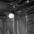 Благодарение на изключително гладката повърхност на емайллака почистването вече е необикновено лесно и бързо. Единственото, което трябва да направите, е да сипете 0,5 литър вода в тавата за печене, да я поставите във фурната и да зададете температура 50 градуса и време 30 минути. Когато под въздействието на водната пара всички замърсявания омекнат, без усилие ще почистите камерата на фурната с помощта на влажна кърпа и отново ще имате чиста, гладка и блестяща повърхност.